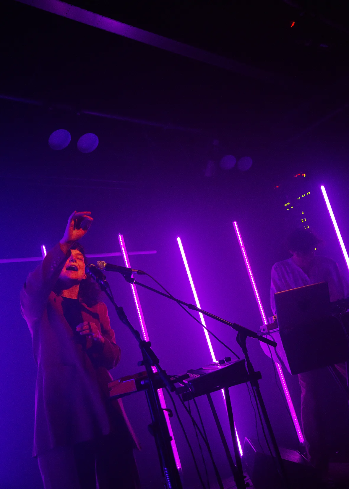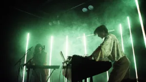 For Awün’s album release “When Cyber Sapiens Close Their Doors to the Outside” I designed, build programmed and controlled an LED installation during their performance at the Cinetol in Amsterdam. The installation consists of eight two meter long beams of RGB adressable LEDs and receives video input.