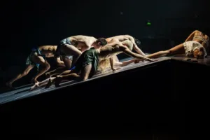 Inspired by Théodore Géricault’s painting The Raft of the Medusa, this multidimensional performance deeply explores the human survival instinct. NOUS, le RADEAU /WE, the LUST takes the audience on a floating raft navigating the waves of passion – this ambiguous current of desire and madness, loss of control, suffering and joy and euphoria. From a chaotic crescendo to a slow reduction to a burning core, choreographers Emio Greco | Pieter C. Scholten and composer Franck Krawczyk probe the depths of human existence. During this journey, passion is a drifting force in search of more desire, offering hope, hallucination, erotic taboo, and brutality, leaving the body exhausted but open to new utopias.