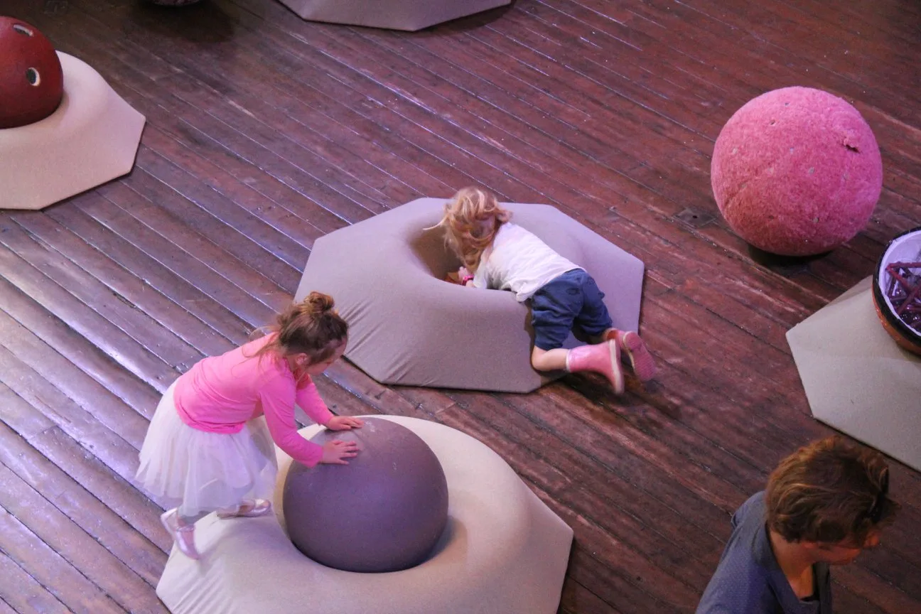 Together with a group of theatre-designers, I developed an interactive, modular children’s installation to be part of the Twee Turven Hoog Festival. We decided to create a collection of balls in different sizes, with different textures, colors, scents, sounds and more. This was done in order to speak to the senses of our visitors as much as possible.