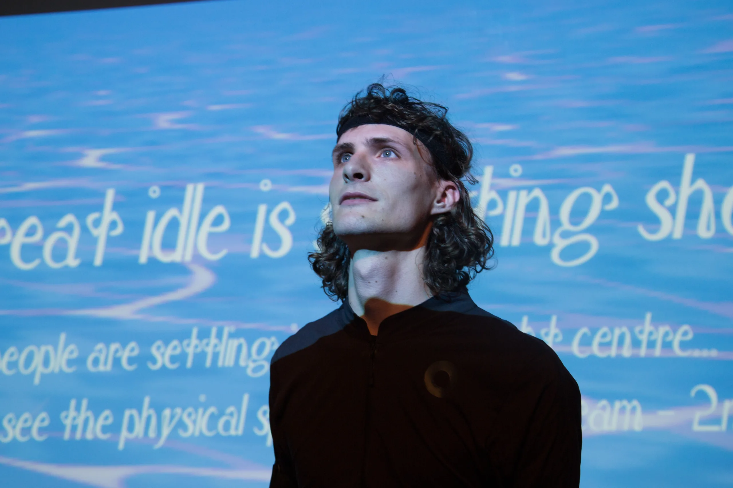 The Great Idle is a mixed-reality performance which blends live performance with real-time interactive simulation. As the audience, you control the character’s actions, which an actor performs live in an immersive, hybrid theatrical setting. You can also actively participate in the narrative by choosing from a range of prompts that influence the storyline and the character’s environment. Together with other audience members (online and onsite), you become a vital component of the story, adding an element of unpredictability to the performance. The story unfolds in a captivating game of chance, control, action and idleness, involving the live actor, the audience and the virtual world.