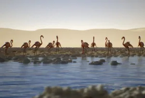 Of the unique lithium-rich ground water, twice as salty as the ocean, that feeds the natural lagoons in the desert, and of the complex ecosystem evolved to exist in these unique extreme conditions.
